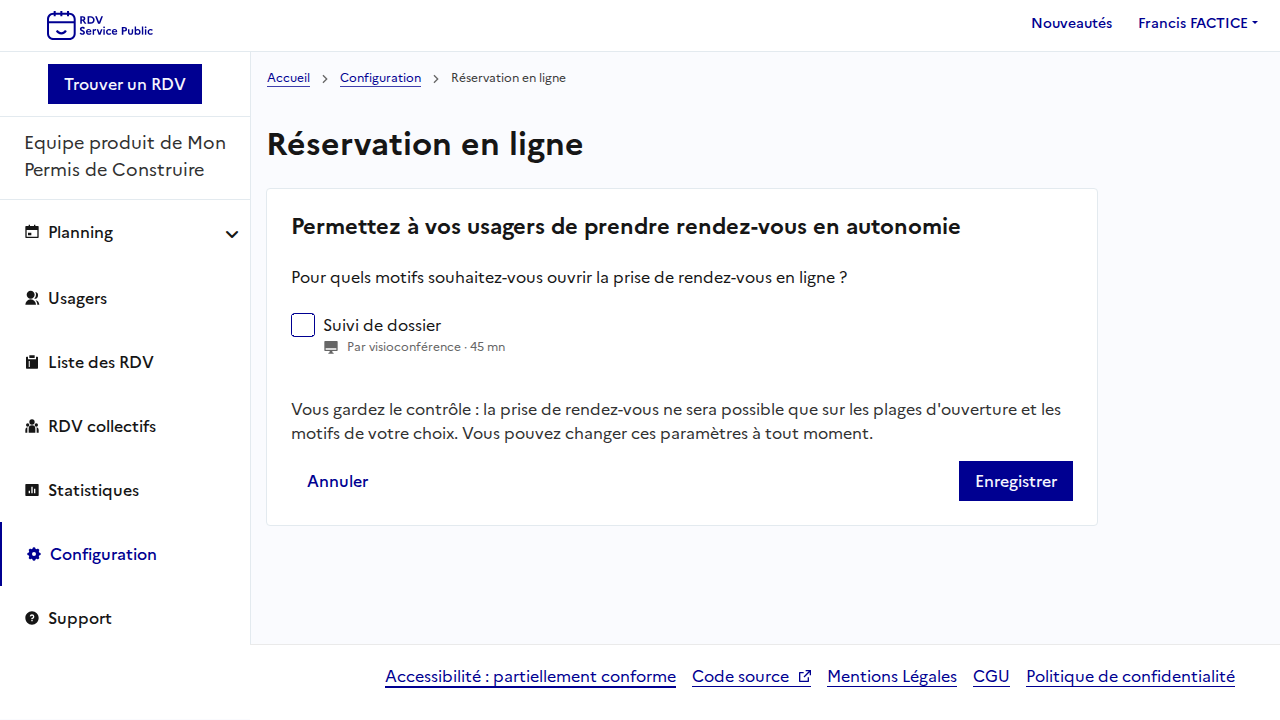 Je sélectionne la prise de rendez-vous par des professionnels et j'enregistre.
