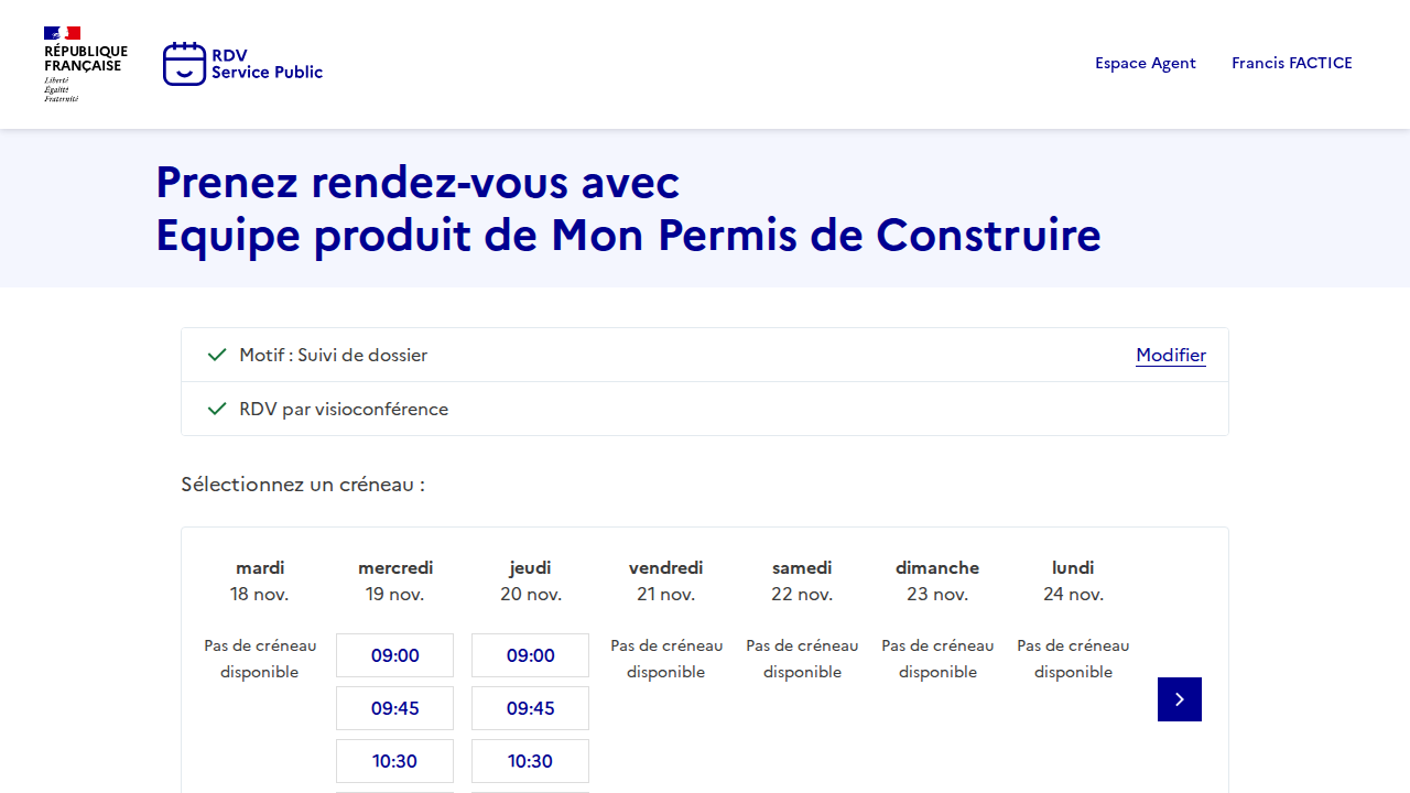 Je visite le lien de prise de rendez-vous que l'agent m'a transmis.