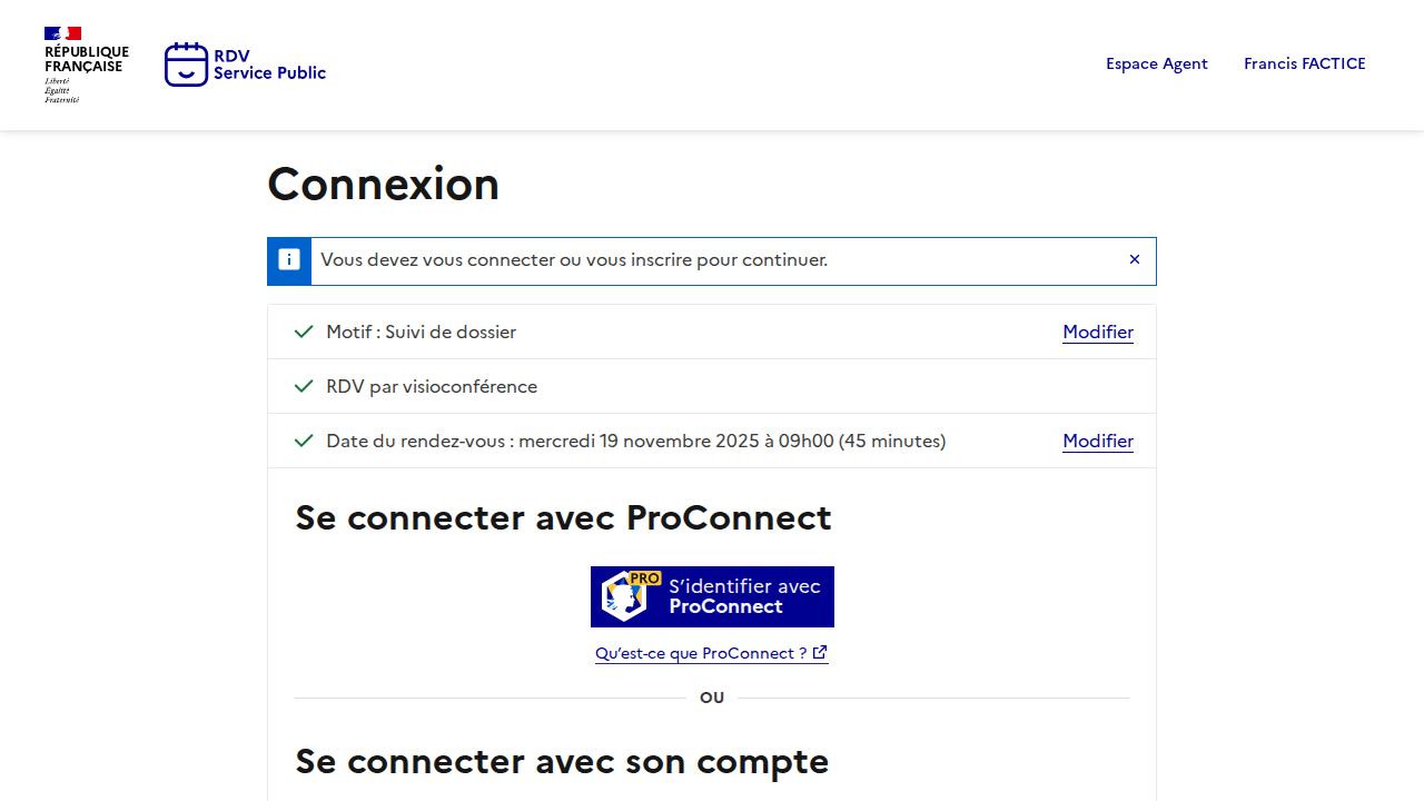 J'ai un compte sur RDV Service Public, sur lequel j'ai juste un motif "Suivi de dossier" par visio.