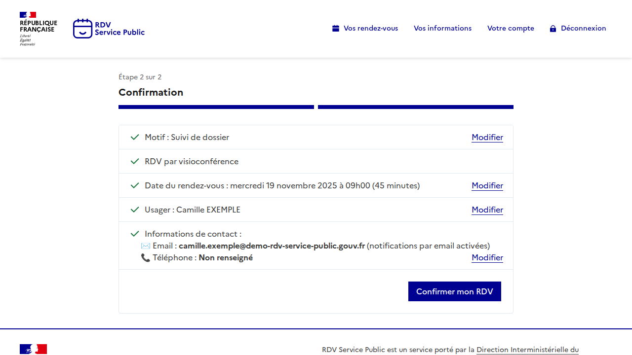 Je confirme le rendez-vous