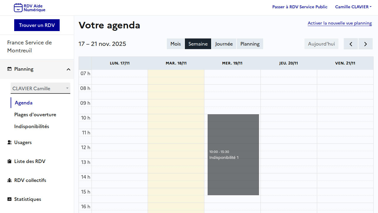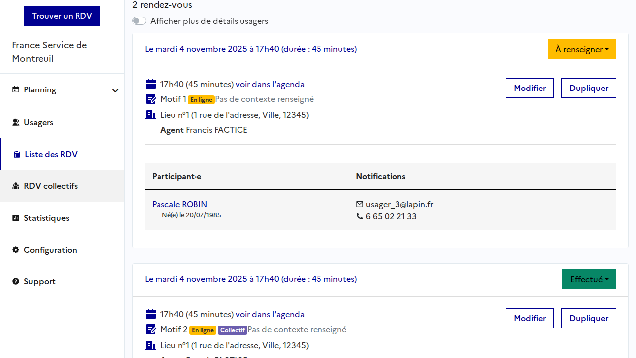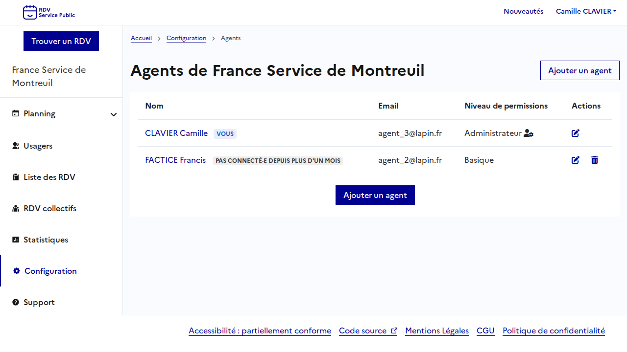 En se connectant sur RDV Service Public, on constate que les agents ont bien été créés.