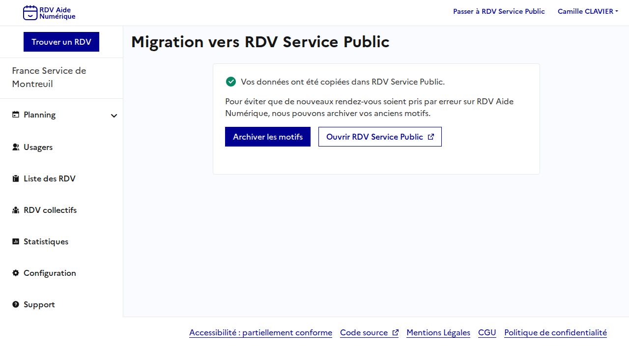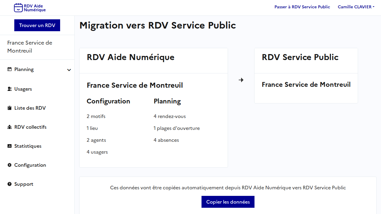 La migration est réussie. Mes usagers sont maintenant disponibles sur RDV Service Public