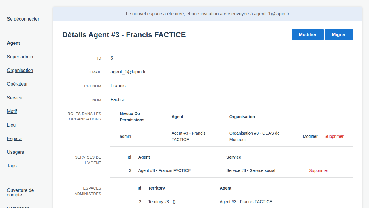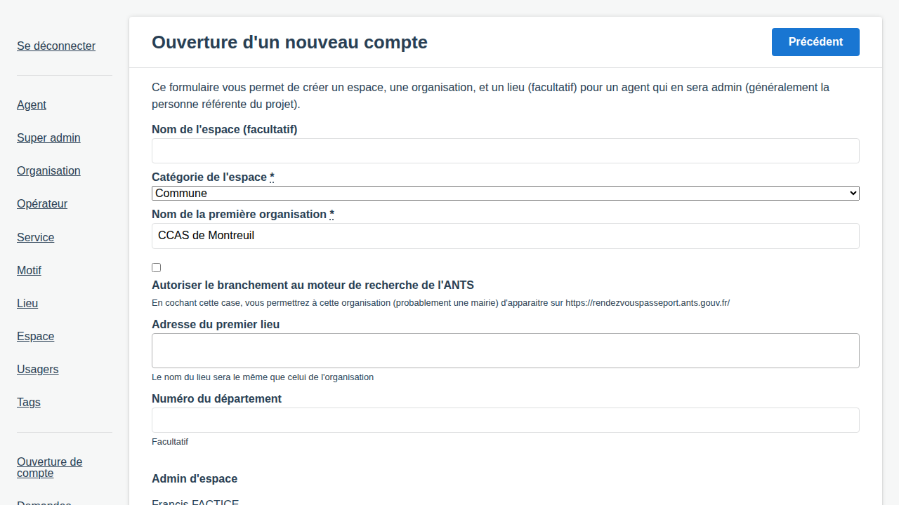 L'équipe déploiement a ensuite reçu la demande de création de compte dans le super admin