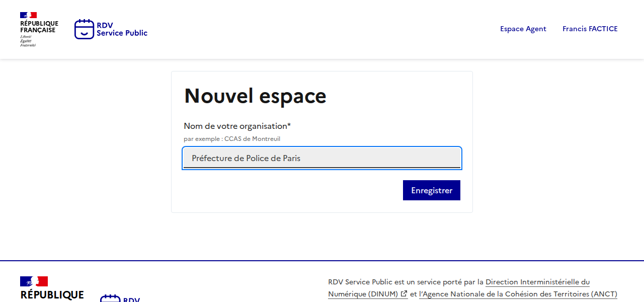 Je remplis ce formulaire pour ouvrir un espace pour ma structure, par exemple une préfecture