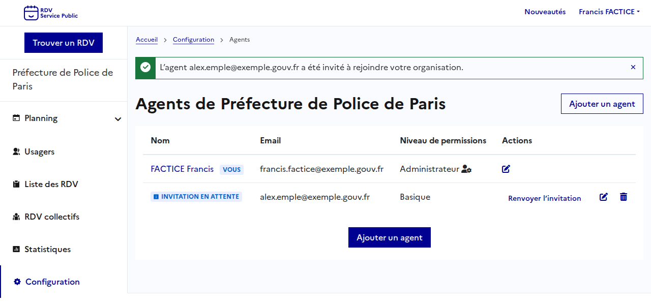 3) Inviter les agents qui vont gérer les rendez-vous (facultatif)