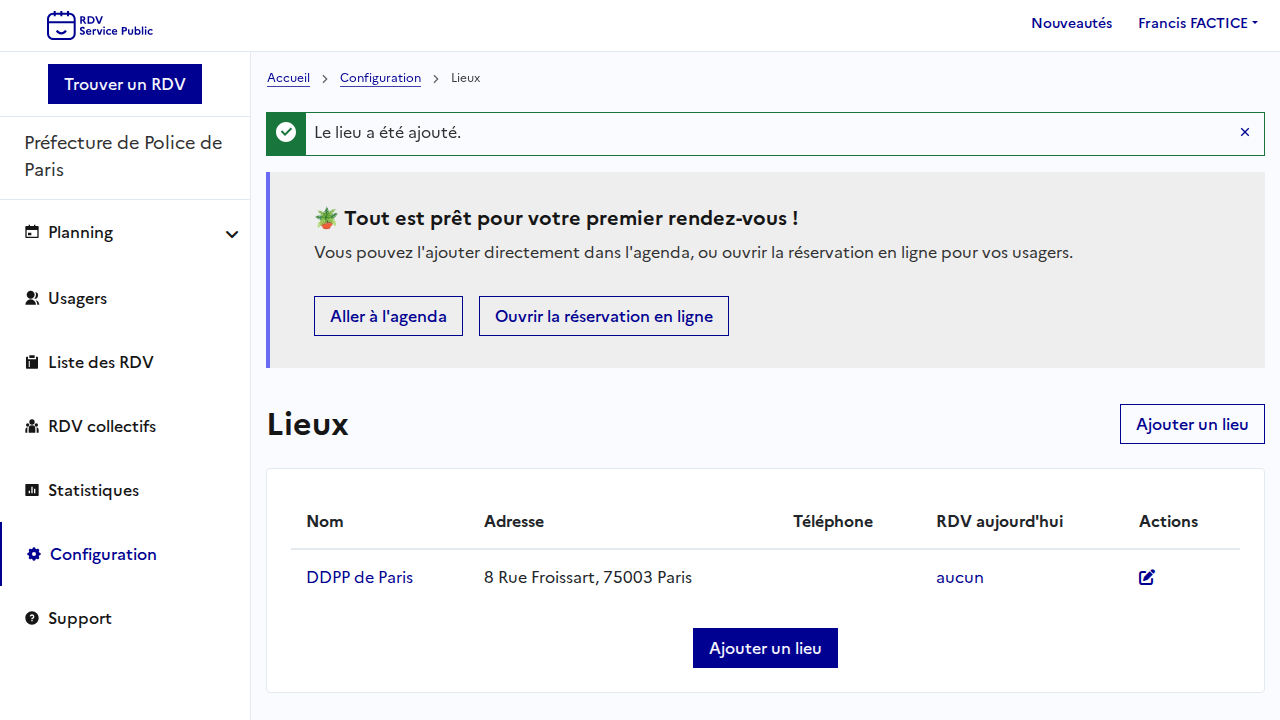 5) Ajouter des lieux de rendez-vous (facultatif)