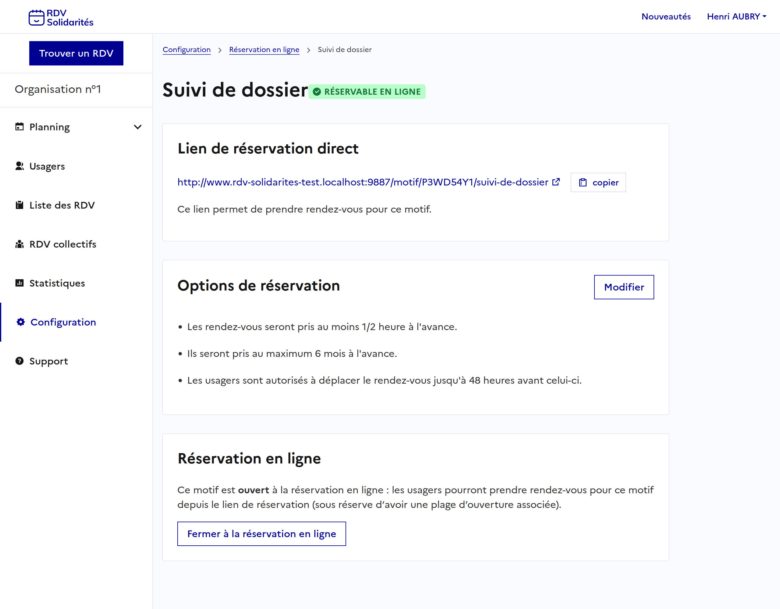 1) Pour un motif ouvert à la réservation en ligne, avec des créneaux disponible